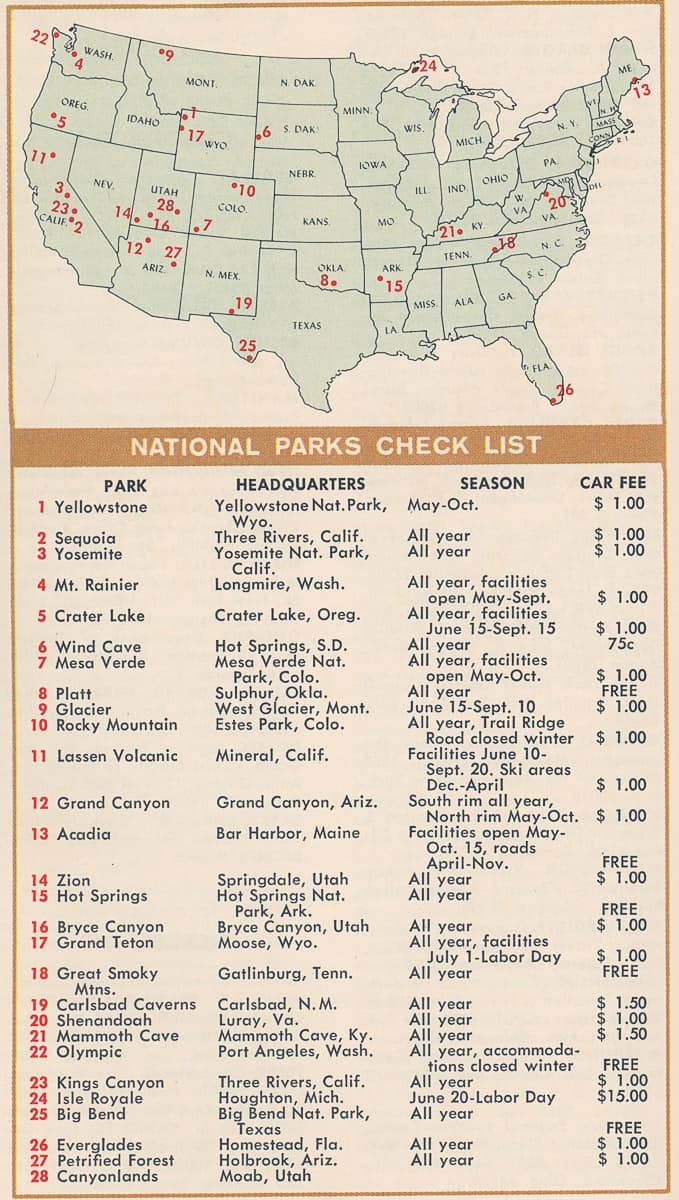 A sample map showing the three possible permutations of a route that could be provided by the prepared mapI, too, often hold a roadmap while fishing for salmonThanks for clarifying"Hey kids! Let's plan our vacation and have some Purple Drank!"The current roster of National Parks is 63, so either this list is incomplete or the last 55 years have blessed us with a lot more