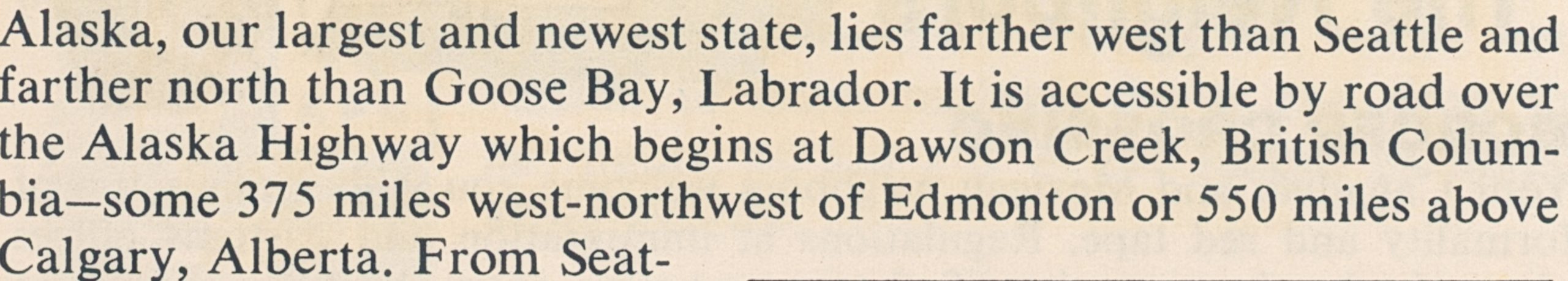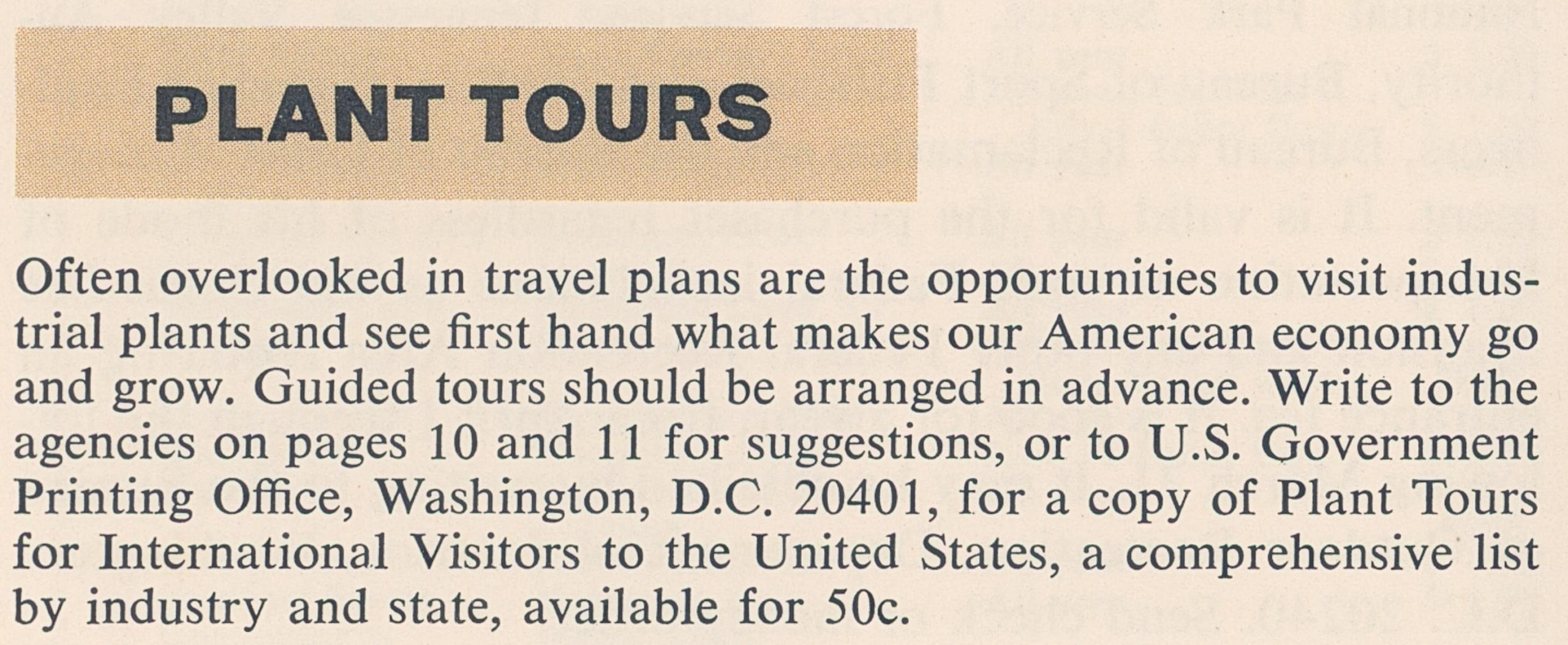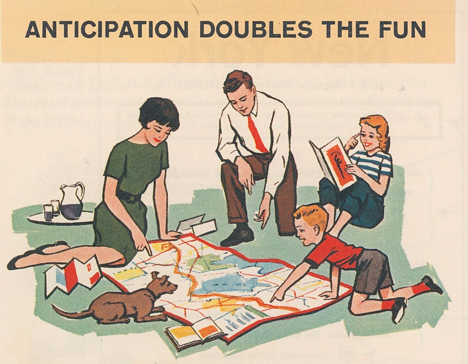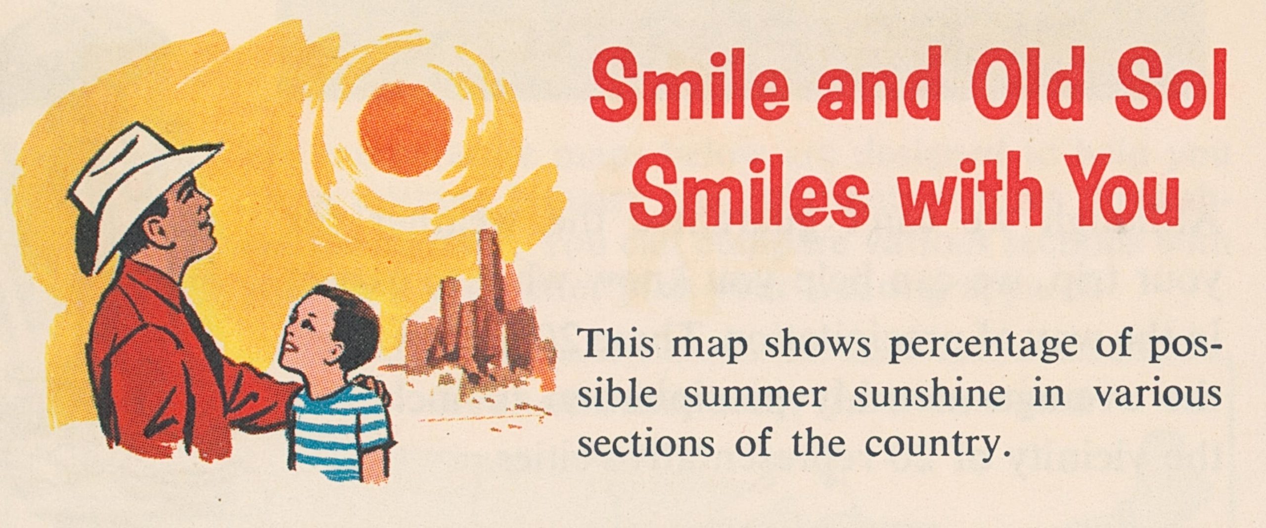Nothing like going on vacation and touring factories! (Though I'd probably enjoy it, once again to my wife's chagrin)."...completion by 1972"This seems like too much math for me to do while planning a vacationAs a resident of Texas, I can assure you that global warming has ensured there'd be some red on this map if it were from this century"Smile son, for Old Sol is coming to take us to our eternal reward!"That's about $311 in 2022 money, which seems like you could do better than today (unless you stay in an AirBNB where the owner charges as much as the room for a "cleaning fee")If you have a station wagon, you can turn the rear into a dangerous playground for your kids!Were they just ignoring the fact that Hawaii also became a state in 1959 after Alaska and would thus be the newest state? Did they refuse to acknowledge it because you can't get there by car?Canada hadn't bought into that whole "metric" thing yetCanada was still using Her Majesty's GallonsCanada didn't change to the metric system until 1975. The United States didn't change until never.