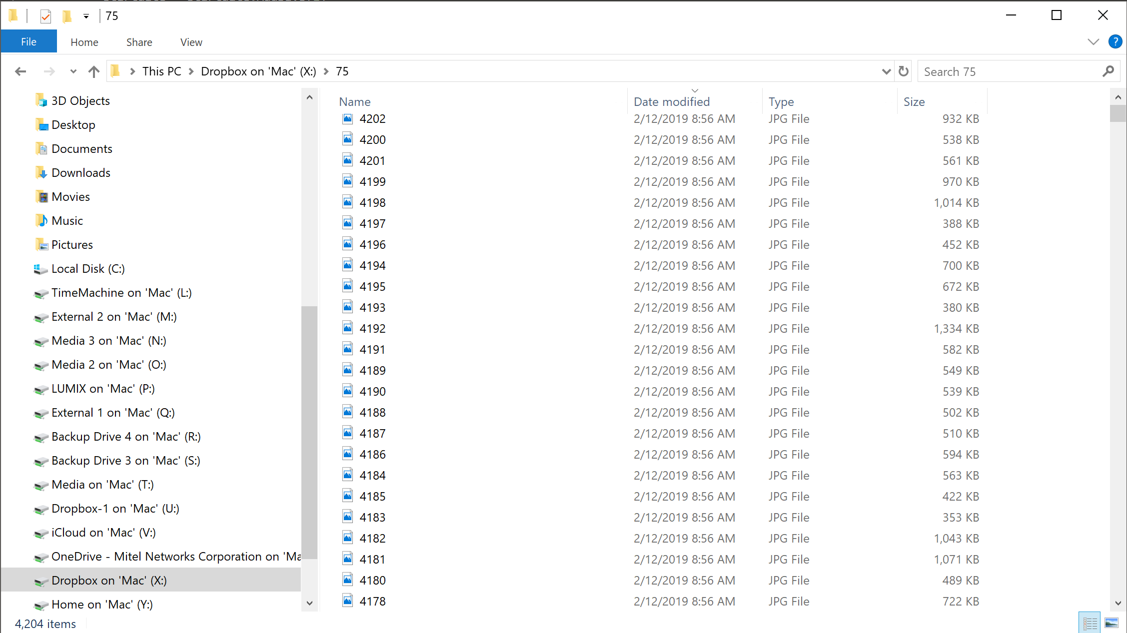 When the application runs, it iterates from the chosen date to today and saves the files locally. When it finishes running, which is in the case of starting on August 12, 2007 and ending today, we end up with a folder of of over 4200 ordered .jpg files of every published photo on 75CentralPhotography.Com: