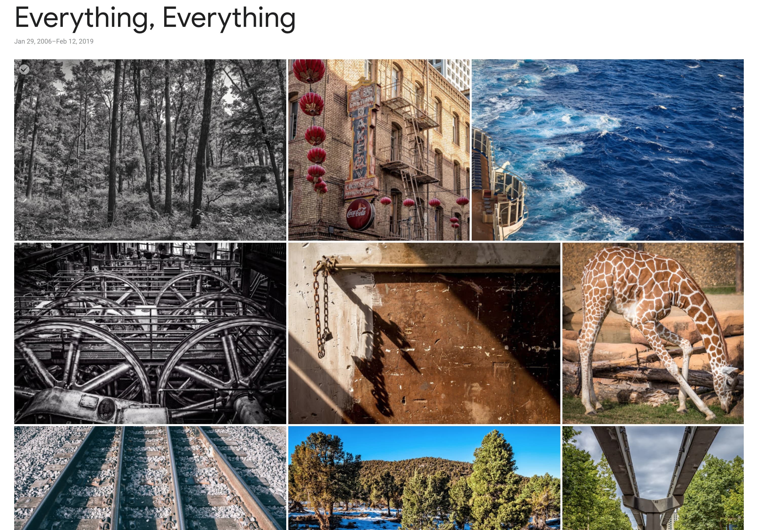 I thought it would be nice if all my Chromecast-connected TVs and my Google Home Hub would display my photos as part of their screensaver feature. However, to do this, I'd need to have a folder in Google Photos of all my published photos. Building this collection of photos is actually a bit harder than it sounds, believe it or not! Why not just export all of the photos from your Photoblog collection in Lightroom?, you ask. Well, the problem there is that that collection actually contains about 600 other photos that have either not been published or were mistakenly tagged as a photoblog item, so any export would have a lot of cruft. So, I needed a way to get all of the photos. Downloading from the backend of 75CentralPhotography.Com was also an option, except that there'd be a lot of extraneous files there as well for a couple of reasons: 1) since the site runs on Wordpress, any time an image is uploaded, Wordpress helpfully generates a few versions of the file in addition to the original for thumbnail and featured images and, 2), there are leftover files from revisions to posts, so for any photo I've ever re-edited and republished, there's the old version lurking about. Also, a few years ago, we painstakingly re-edited each post to upsize the photos to more-pleasing, easier-to-appreciate dimensions, so the previous versions are out there as well.