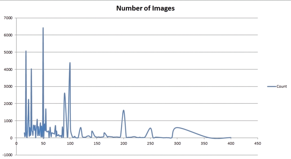 - Group by focal length and sum the number of images in each focal length.