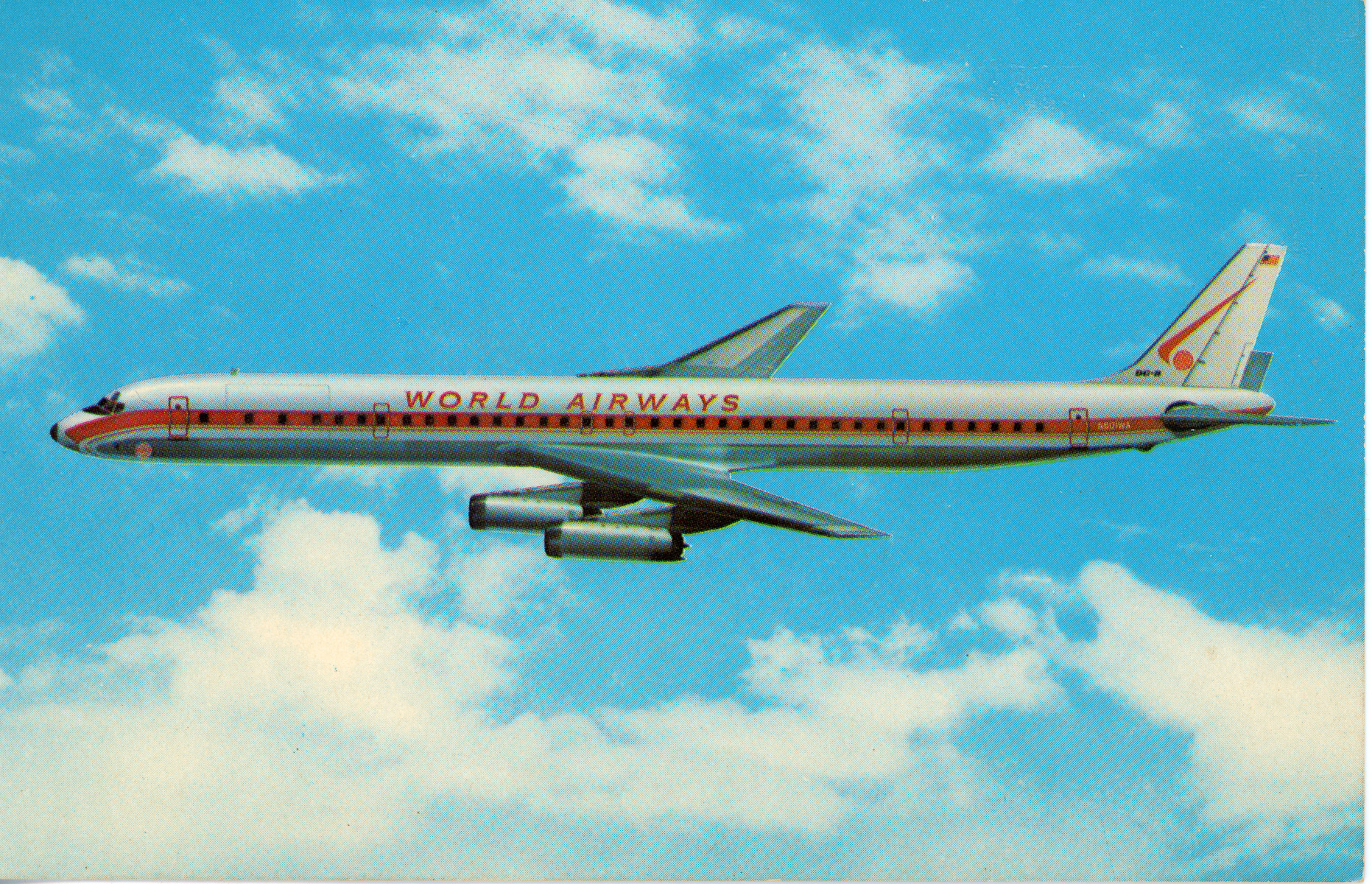 The reverse of which tells us that this is a DC-8 belonging to World Airways:
