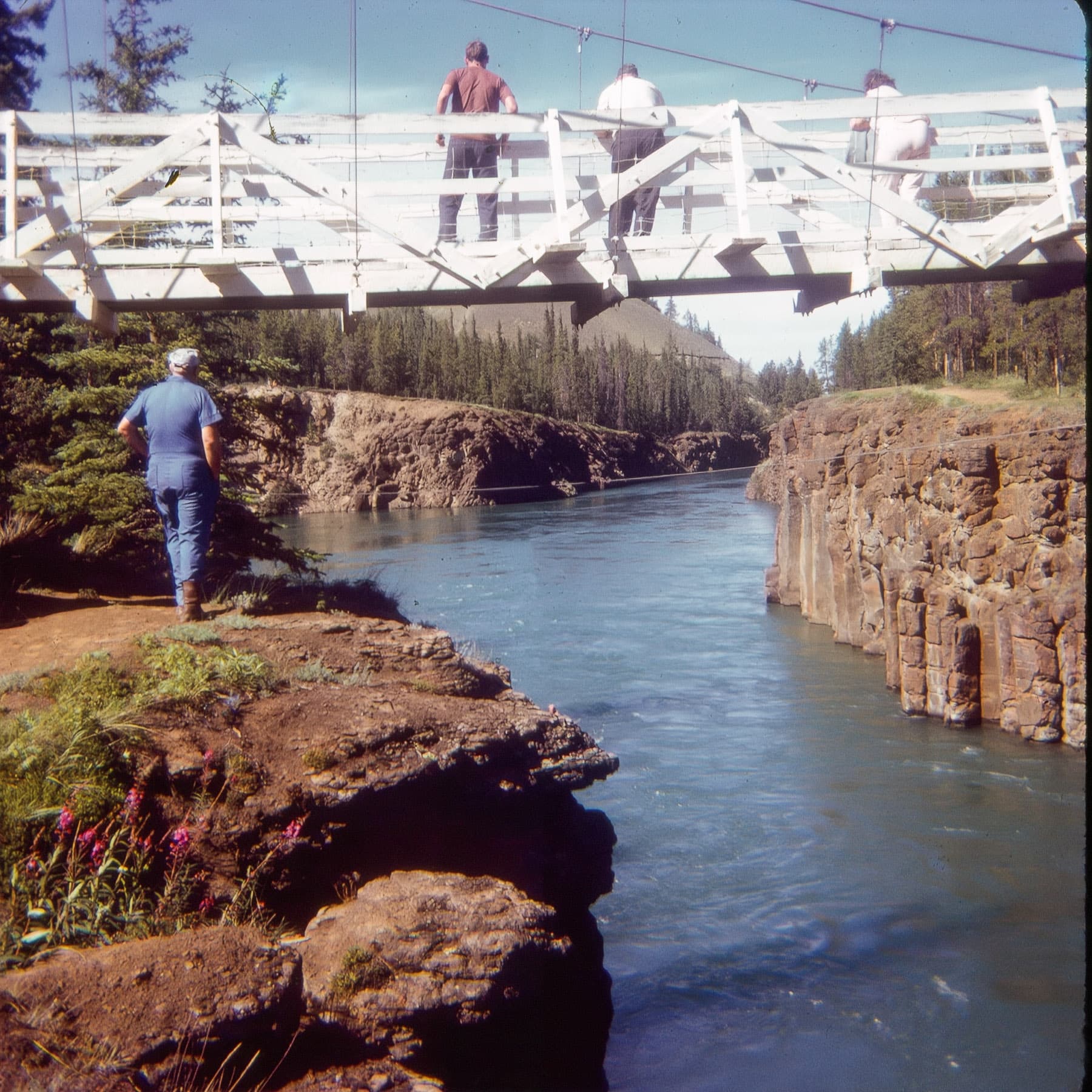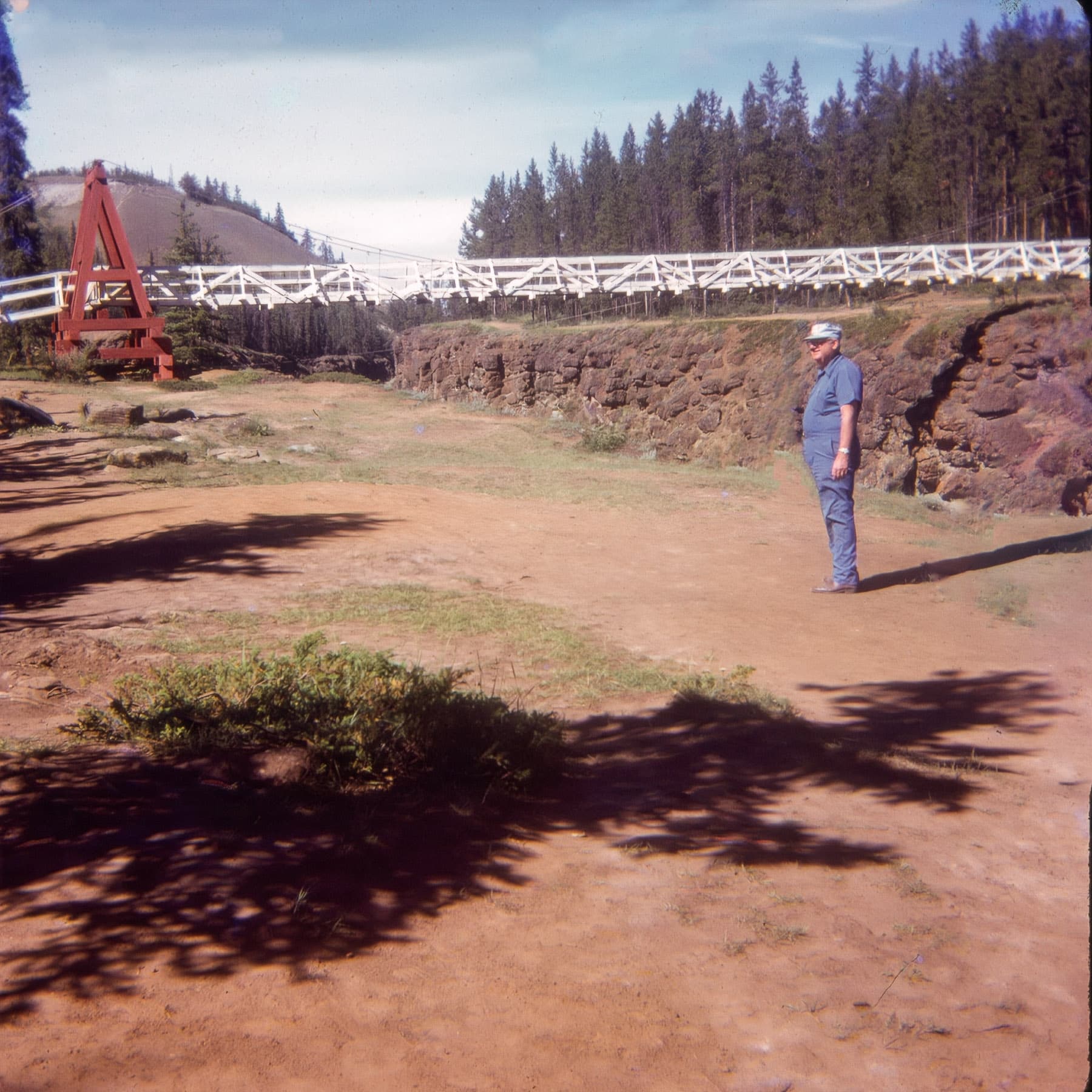 From there, we can deduce that they traveled the Alaska Highway up to Whitehorse, Yukon Territory for two reasons: 1) it's the logical route as the only other route to Alaska from Dawson Creek takes you way north and adds a lot of time and, 2), we have a couple of photos that I was able to identify as being of the Miles Canyon Suspension Bridge: