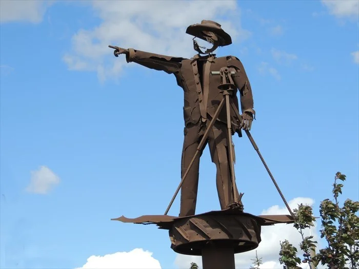 Interestingly, it seems that the marker was moved from the center of the roundabout to its periphery at some point in favor of a sculpture of a surveyor: