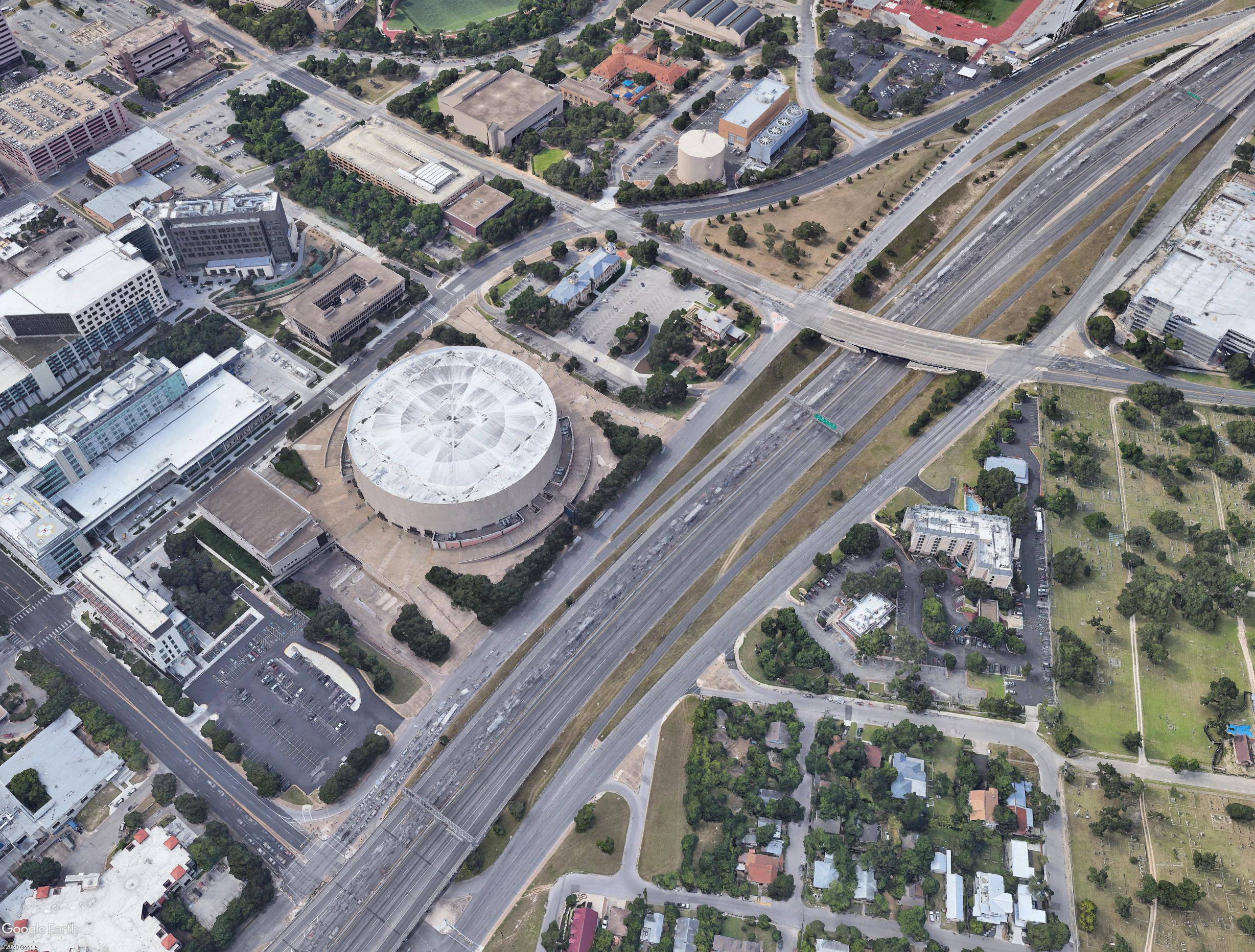 Unfortunately, this fine building is being replaced with a new, less-bizarre structure, the Moody Center: