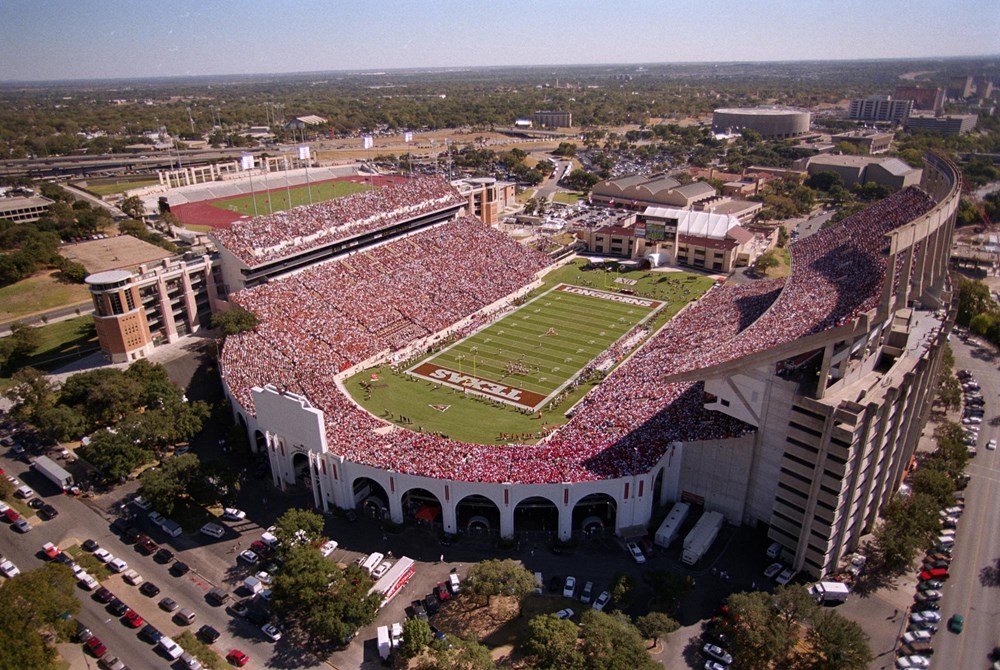 Built in 1924 with a capacity of 27,000, Memorial Stadium was dedicated to the nearly 200,000 Texans who fought in the Great War (as it was called then, since WWII and the forthcoming WWIII hadn't happened yet). Over the years, it was steadily expanded to today's 100,000 fan capacity. And, in 1996, was renamed after legendary Longhorn coach Darrell K. Royal to "Darrell K Royal–Texas Memorial Stadium", which was confusing if you didn't know the origin of the name as Royal was still very much alive at the time of the rename, but it sounded like it was a memorial to him.
