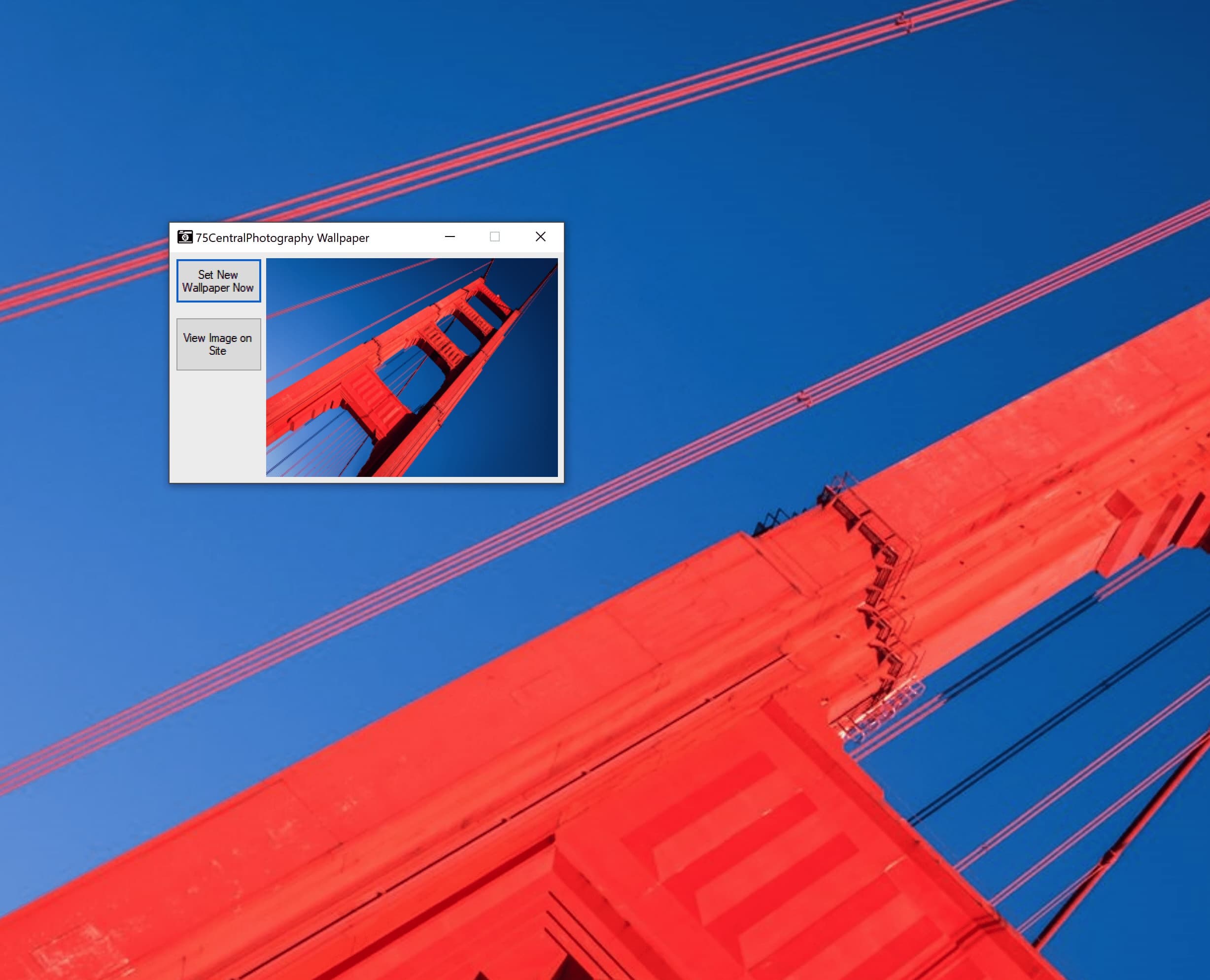 For my latest "me project", I thought it would be cool if I could have my Windows desktop wallpaper periodically change to one of the photos on 75CentralPhotography.com. To accomplish this, I knew I'd need a couple of pieces of software running in different places: