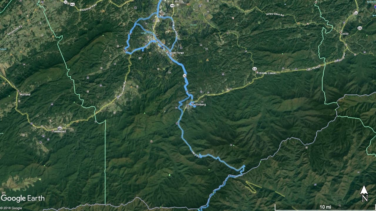 In addition, you can open the .gpx file in Google Earth and get a nice map of your adventure. Here's one from a visit I made to the Great Smoky Mountains last year: