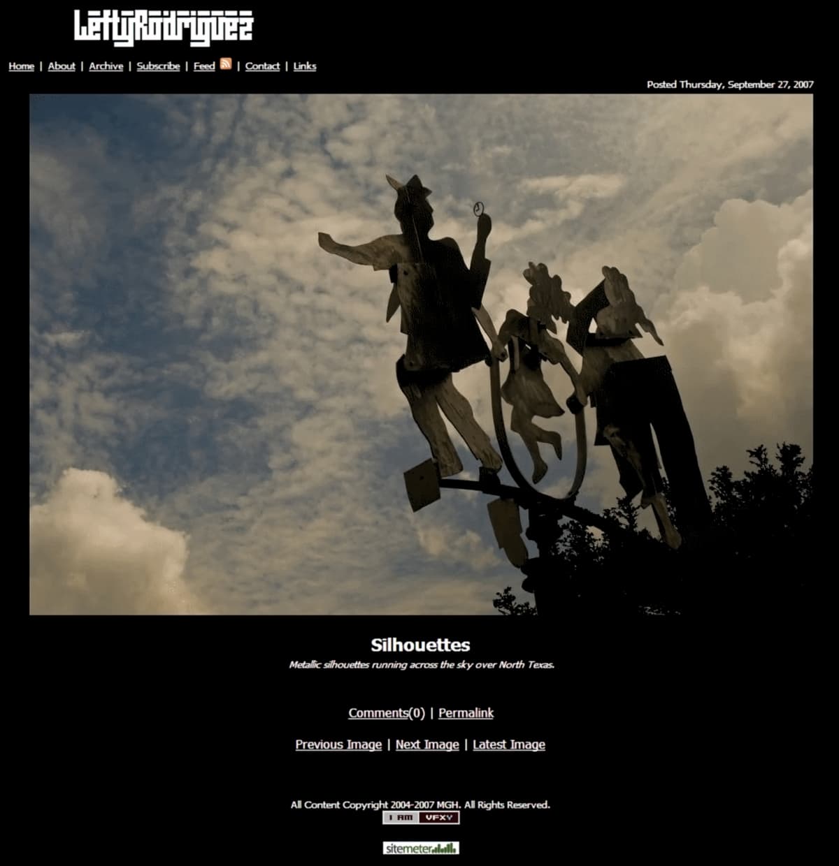 The first version of this site was a home-brewed mishmash of ASP code that I cooked up one weekend in a coffee-induced frenzy. I'd decided that I was going to start a photoblog and, dammit, I was going to do it as soon as possible:
