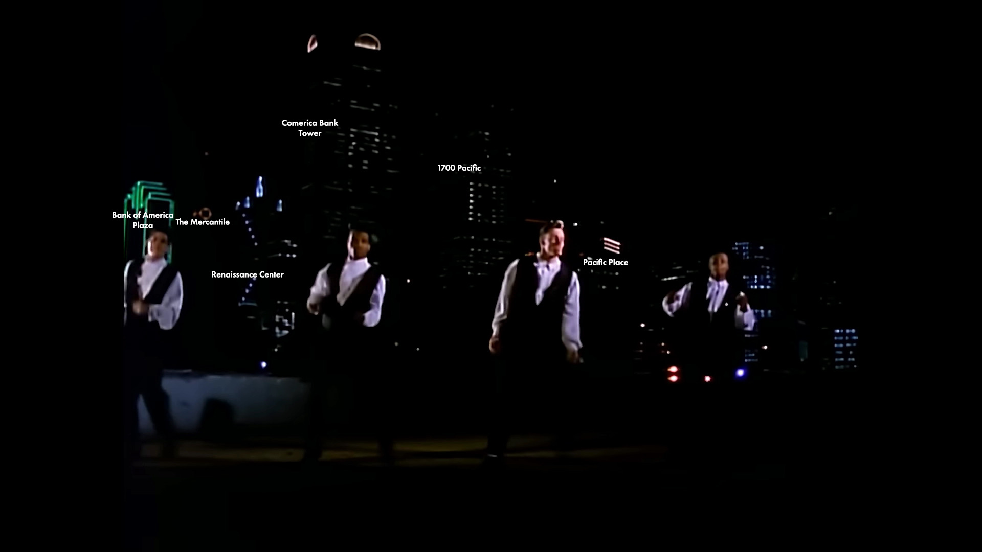At any rate, the music video wasn't shot in Miami as you might think; instead, it's clearly shot in Dallas. Far from A1A/Beachfront Avenue, Sonny Crockett and the Golden Girls' lanai. I hadn't seen the video in literal decades, but the distinctive skyline of Dallas had always stuck in my mind and, upon this viewing, idly wondered where it had been shot.
