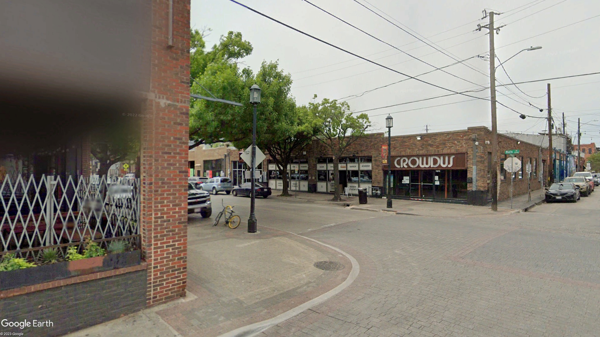 This frame was a key clue. Although I knew, from having lived in the Dallas-area for 20 years, that this had to be the Deep Ellum neighborhood, the distinctive windows, rainspout and roofline of the building the background here was a the biggest clue. So I loaded up Google Earth and poke around in streetview for twenty or thirty seconds until I found it:
